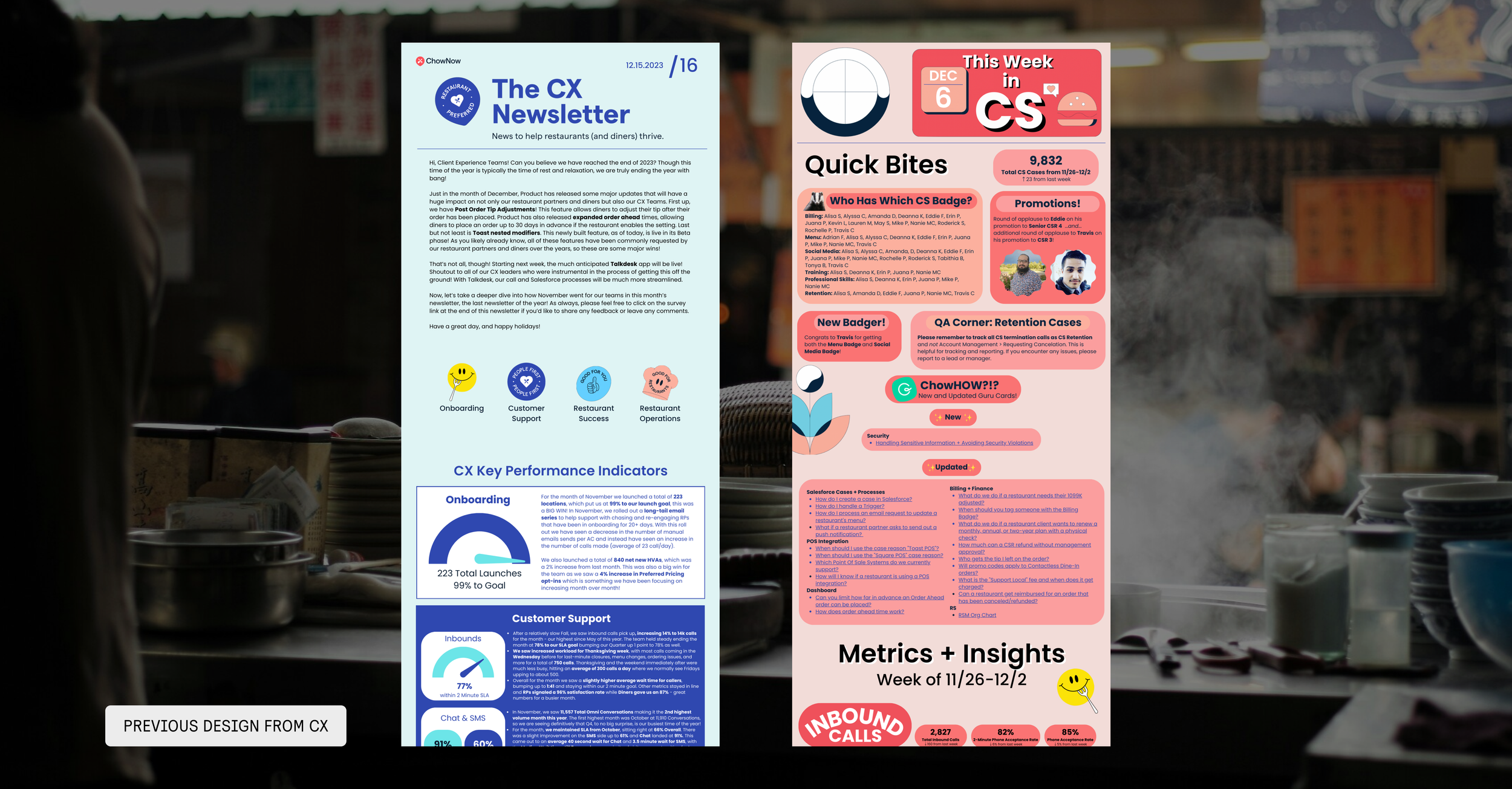 The CX newsletter templates included team updates, call rates, process updates, and where to make improvements on each team. Since then, other teams have asked for similar templates because they were more impactful and easier to update.
